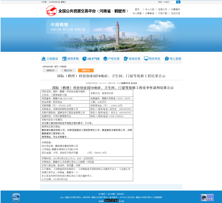 鹏森建设集团捷报频传,连续中标:国际(鹤壁)科技创业园1#-4#厂房卫生间装修及门窗工程、国际(鹤壁)科技创业园7#地砖、卫生间、门窗等装修工程。项目报价共计246万多元。