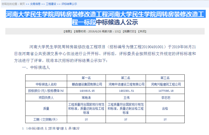 6月26日,鹏森建设集团有限公司中标河南大学民生学院周转房装修改造工程,鹏森集团助力河南大学民生学院发展,为河南教育事业添砖加瓦。